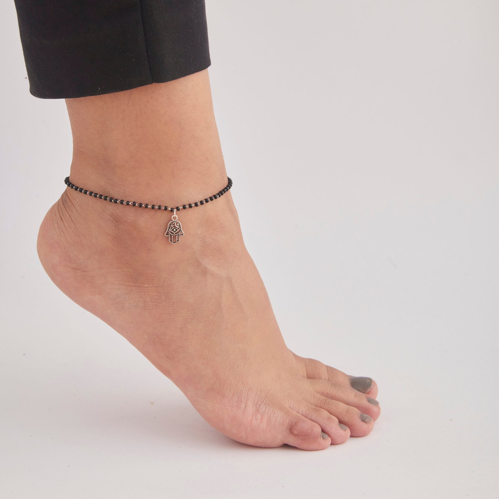 925 Sterling Silver Anklet With Hamsa Hand Charm For Women