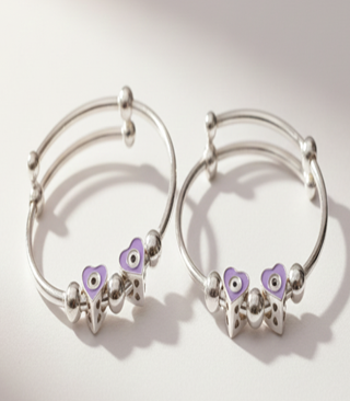 925 Sterling Silver Baby Bangle With Heart Charm Evil Eye
