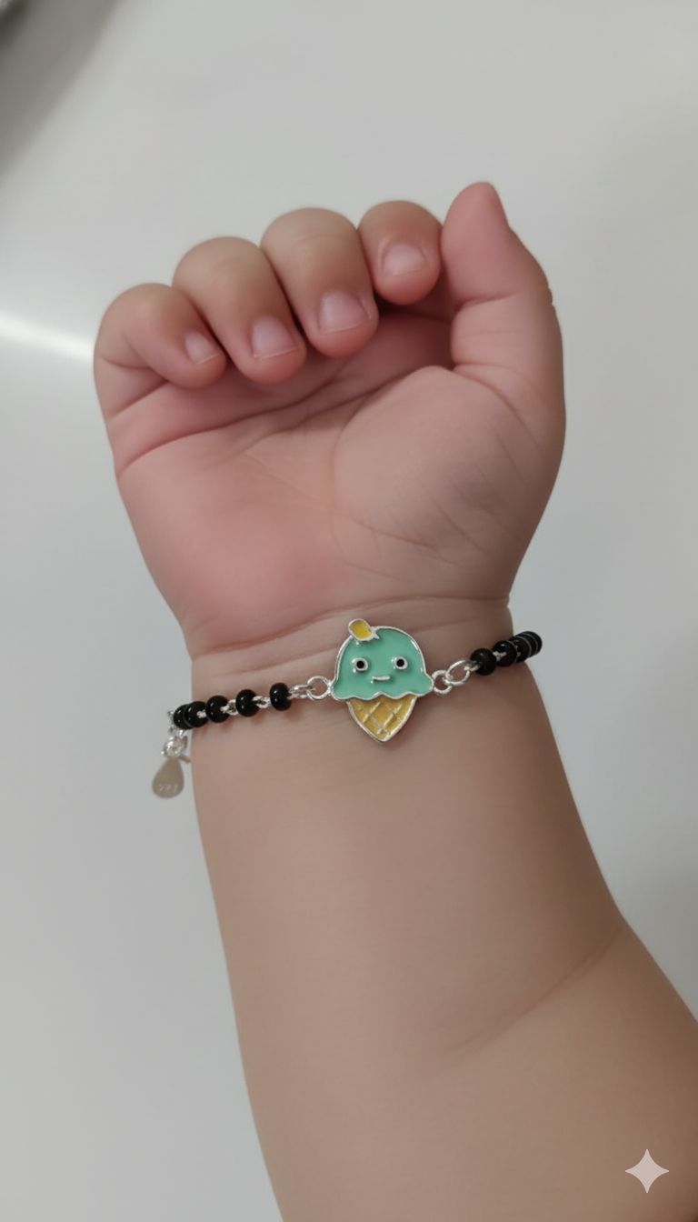 925 Sterling Silver Baby Nazariya With Enamel Green and Yellow Ice Cream Charm