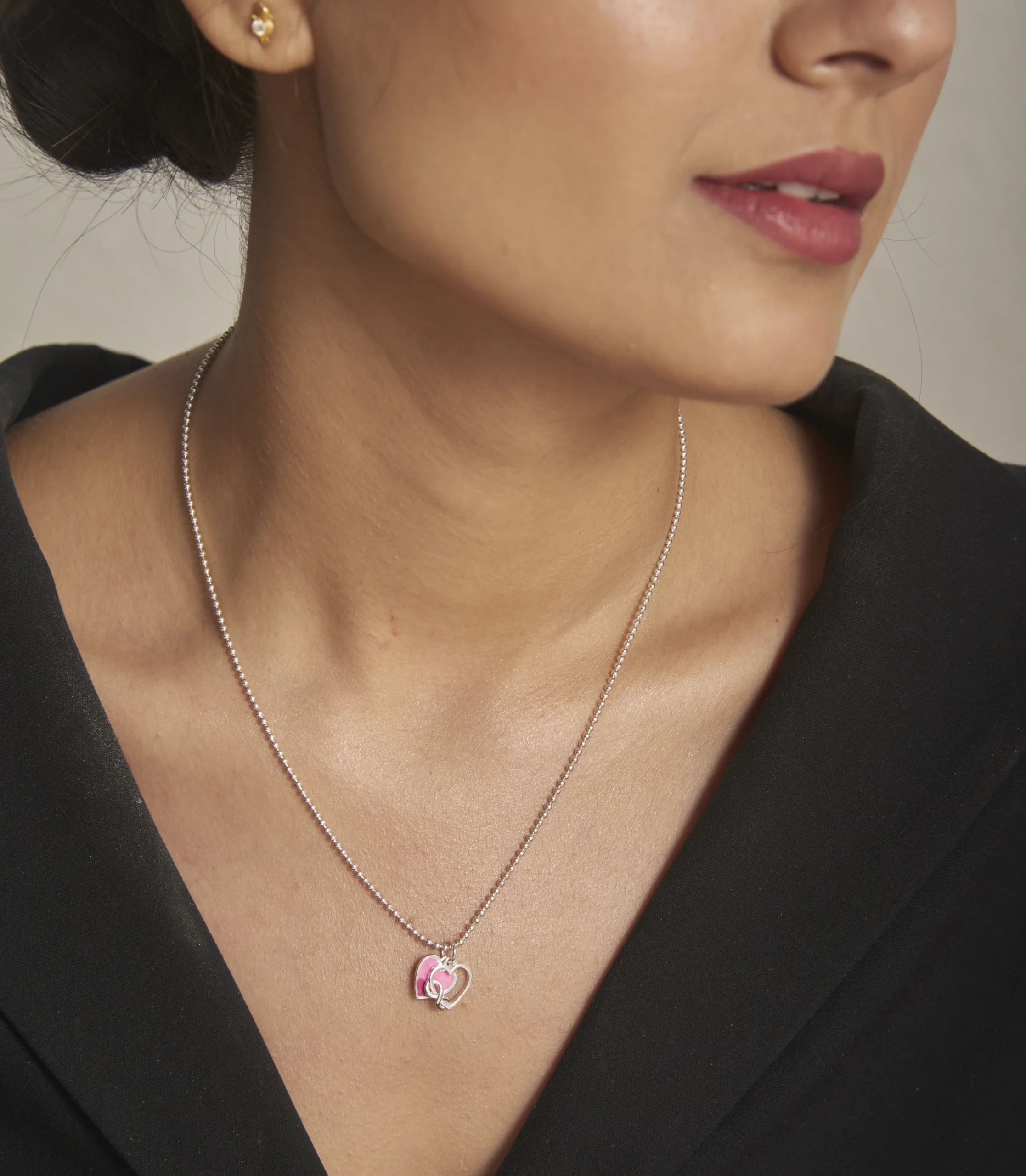 925 Silver Pink Enamel Heart Pendant